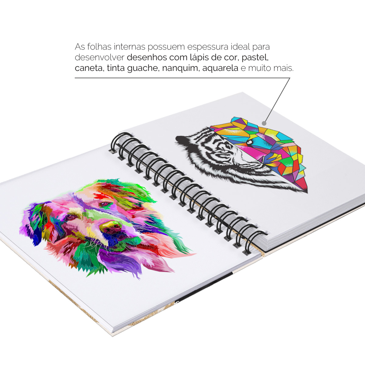 A capa dura do Sketchbook é revestida com laminação BOPP, dando assim um toque sofisticado e um visual com estilo único. Ela é impressa com tecnologia digital UV de alta definição de imagens onde os detalhes são reproduzidos com riqueza e vivacidade!