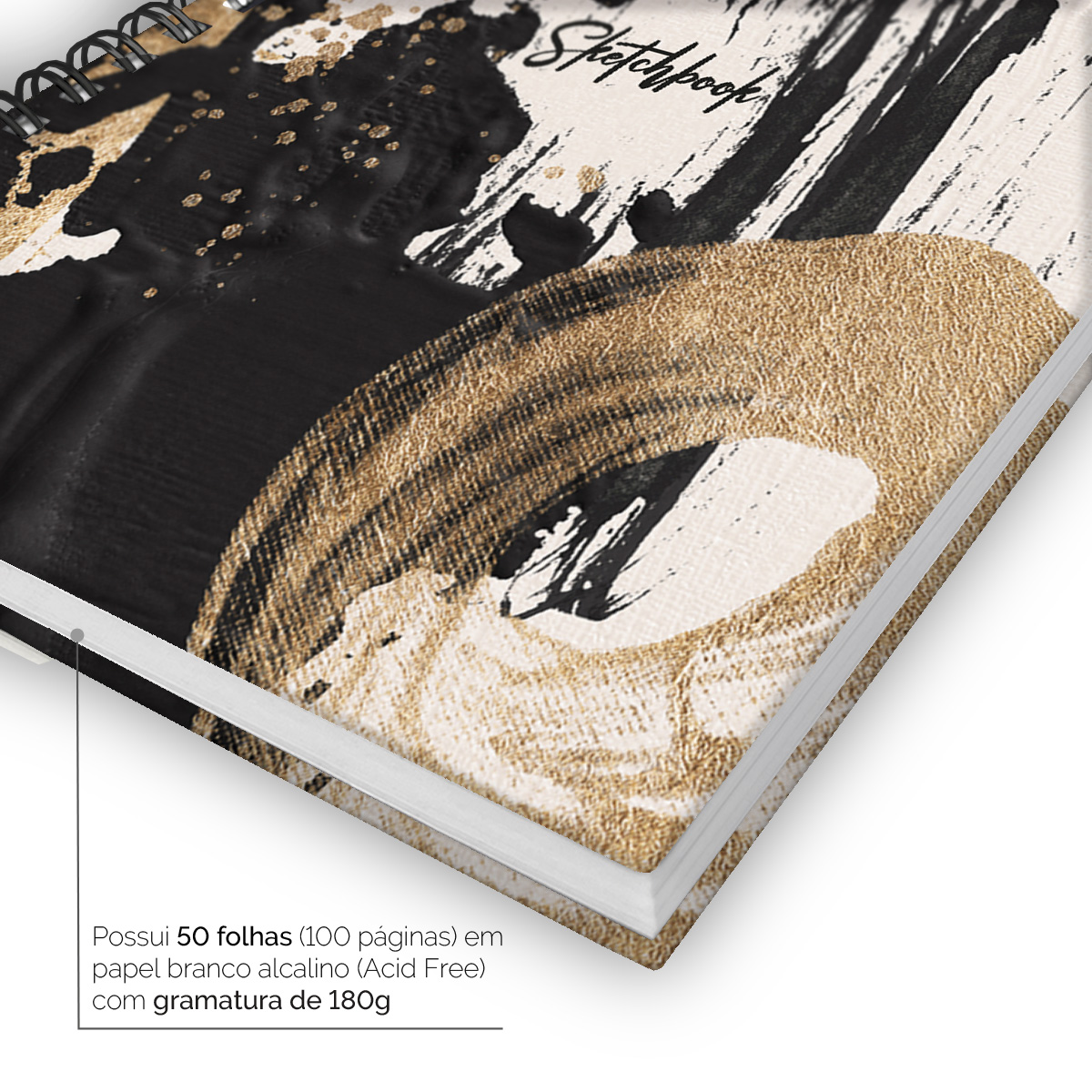 Sketchbook Caderno De Desenho Lírico Abstrato Ritmos de Ouro