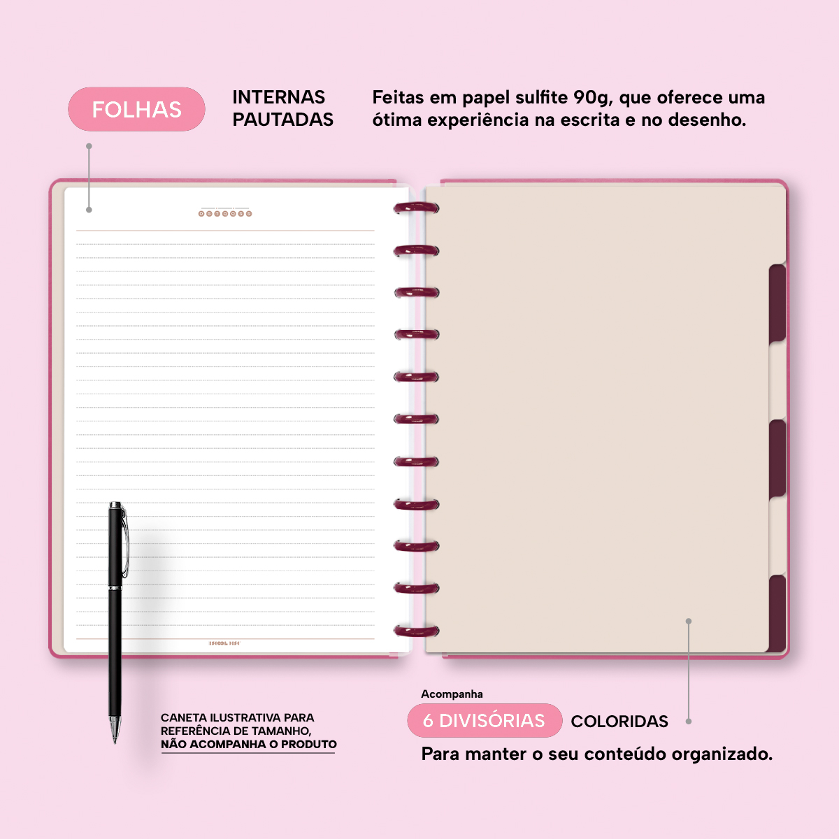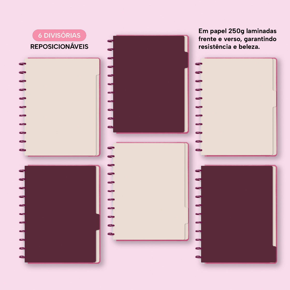 A capa é dura com impressão digital de alta definição, acompanha 6 lindas divisórias que você pode colocar em qualquer local do caderno, funcionando como o guia perfeito para sua organização.
