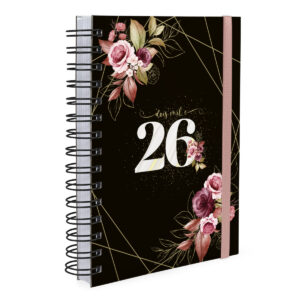 Agenda TradicionalAgenda Plus 2026 Floral Flores Preto e Rosa