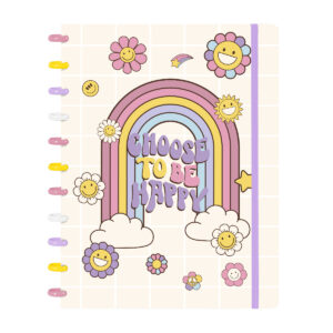 Caderno de DiscoIscool Disc Flex Retro Arco Iris E Flores